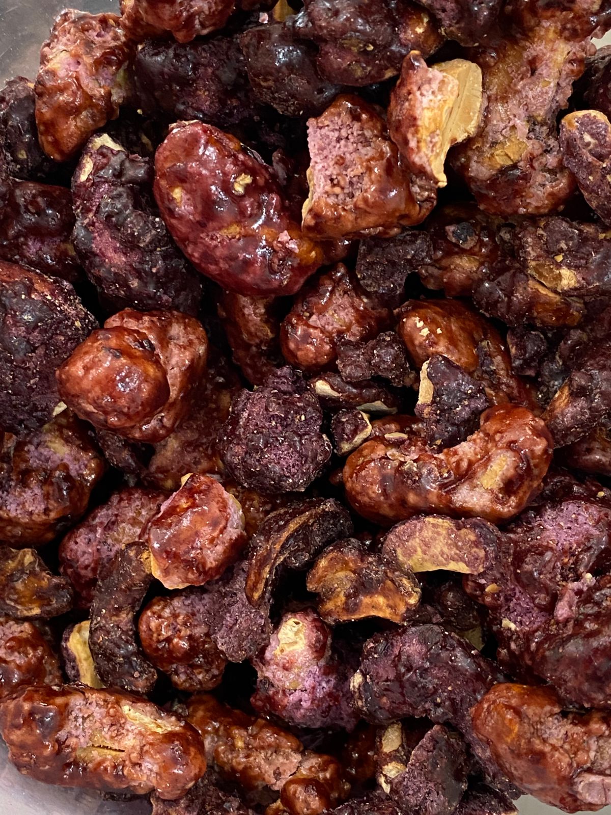 A Castanha de Caju Caramelizada com Açaí une a crocância da castanha de caju selecionada ao sabor marcante e levemente frutado do açaí, resultando em um snack doce, equilibrado e irresistível. Uma opção diferenciada para quem busca sabor e energia em um único produto.