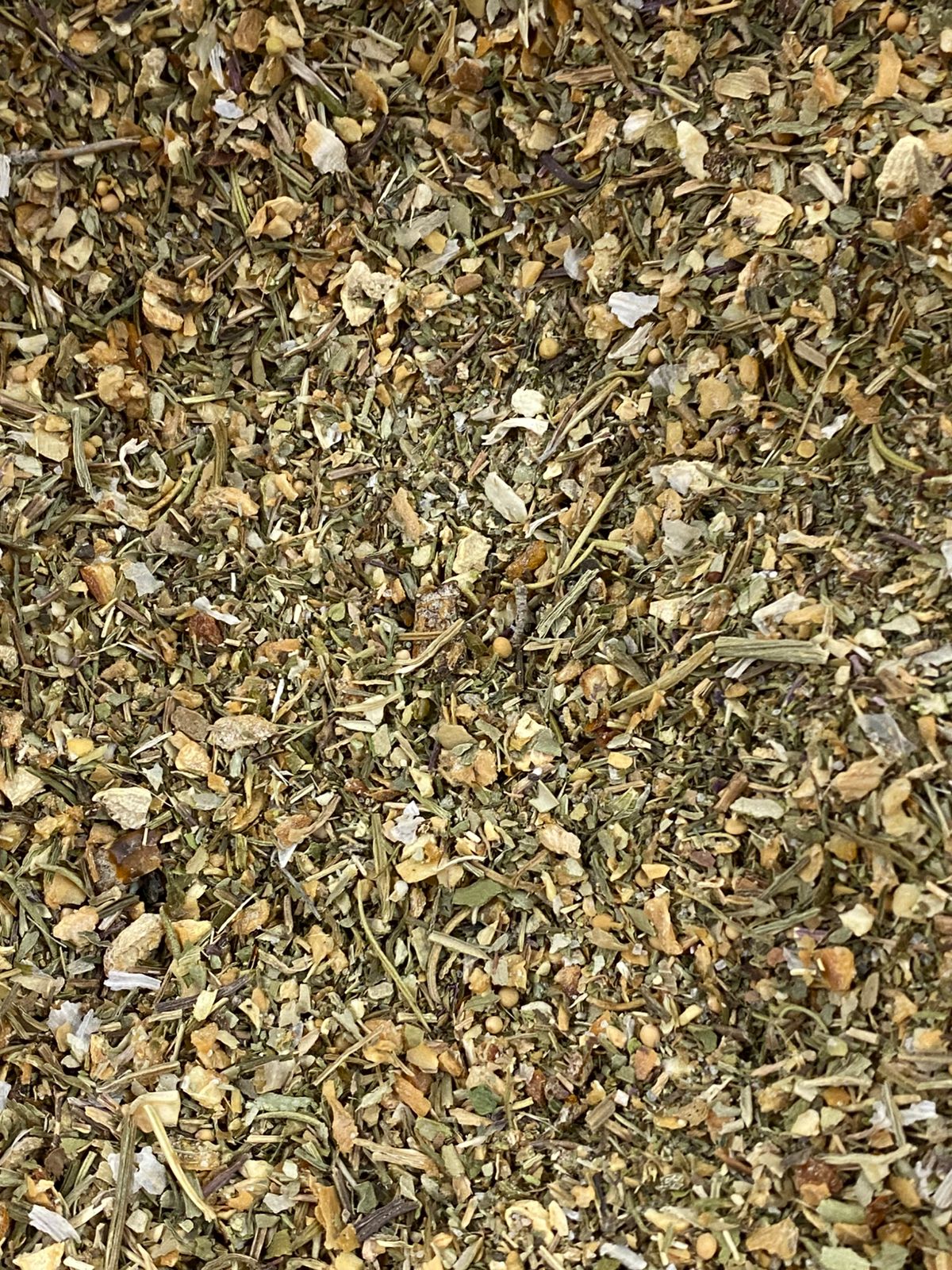 Características: Mistura visualmente equilibrada de tons verdes e claros, composta por salsa, orégão, alho, cebola e outras ervas finas. Possui aroma fresco e sabor intensamente herbáceo e aromático. Rico em óleos essenciais, antioxidantes e fitonutrientes presentes nas ervas puras.