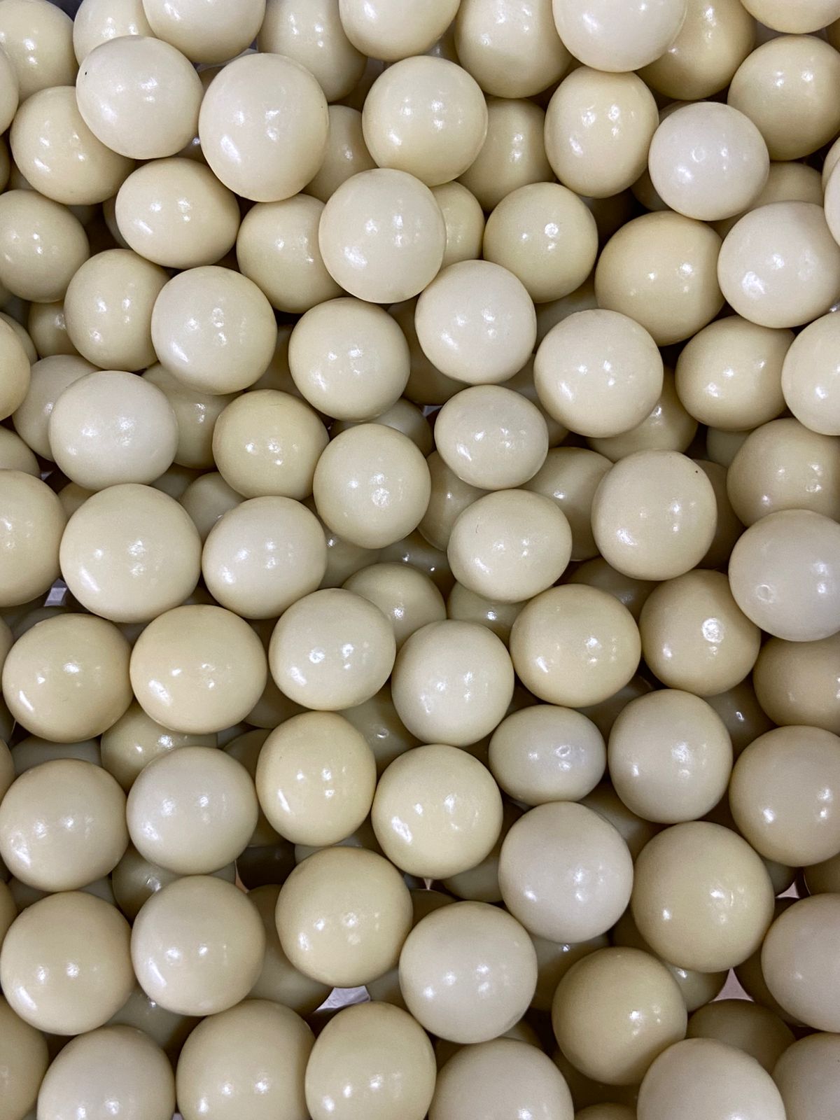 Descrição: Este drageado combina um núcleo selecionado (podendo ser uma oleaginosa, como amêndoa ou macadâmia, ou um centro de cereal crocante) com uma cobertura de chocolate branco de formulação especial com baixo teor de açúcares. Oferece a cremosidade característica do chocolate branco, com notas acentuadas de leite e baunilha, sem o dulçor excessivo das versões tradicionais, sendo uma opção equilibrada para dietas com restrição de sacarose.