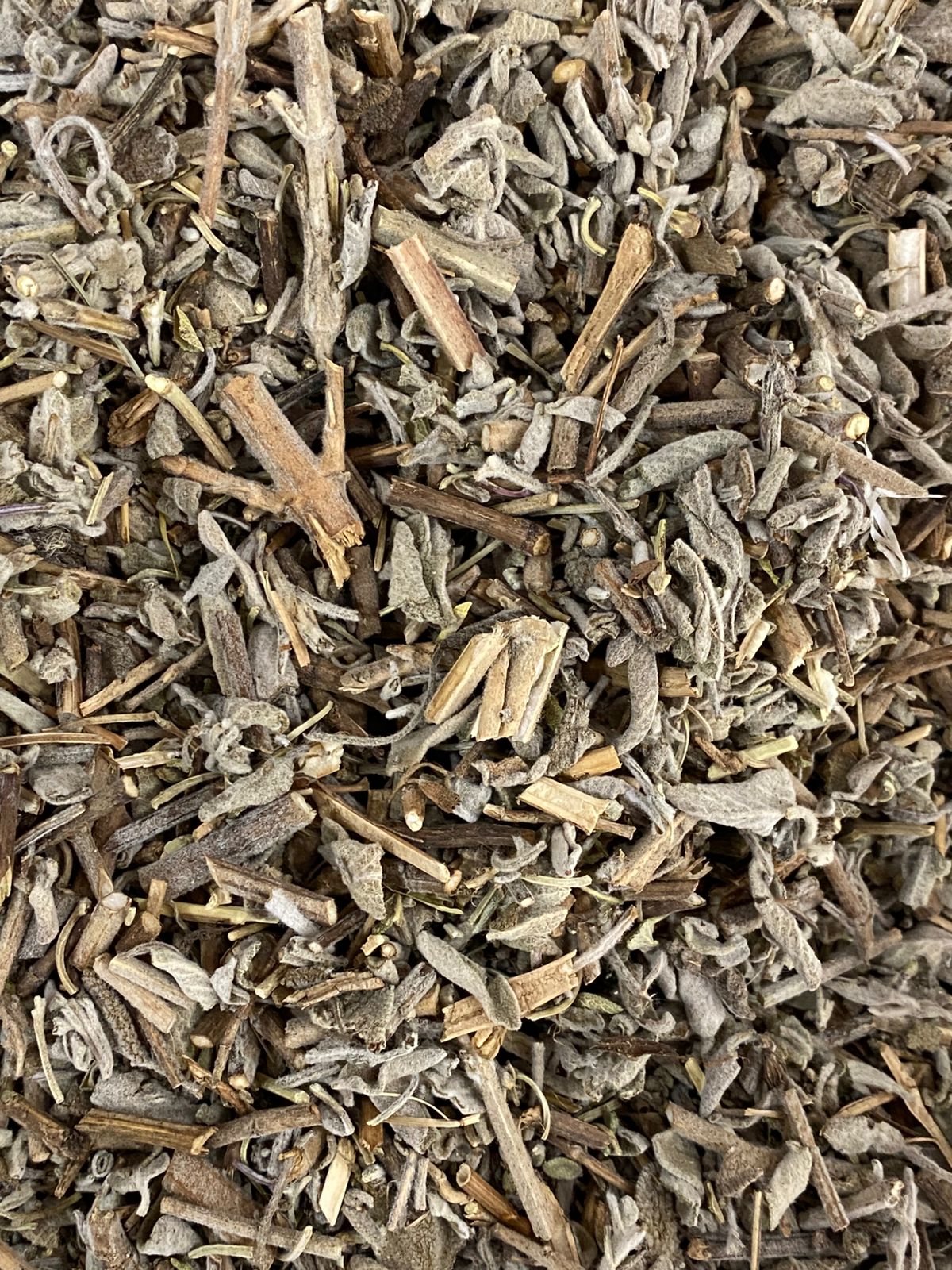 A Sálvia, também conhecida como sálvia-comum, sálvia-das-boticas ou erva-dos-magos, é uma planta aromática perene originária da região mediterrânea, da família Lamiaceae, colhida pelas folhas cinza-esverdeadas e flores roxas ou azuladas. Vendida a granel na loja, é 100% natural, seca e própria para preparo caseiro de chás, infusões, gargarejos, banhos ou uso aromático.