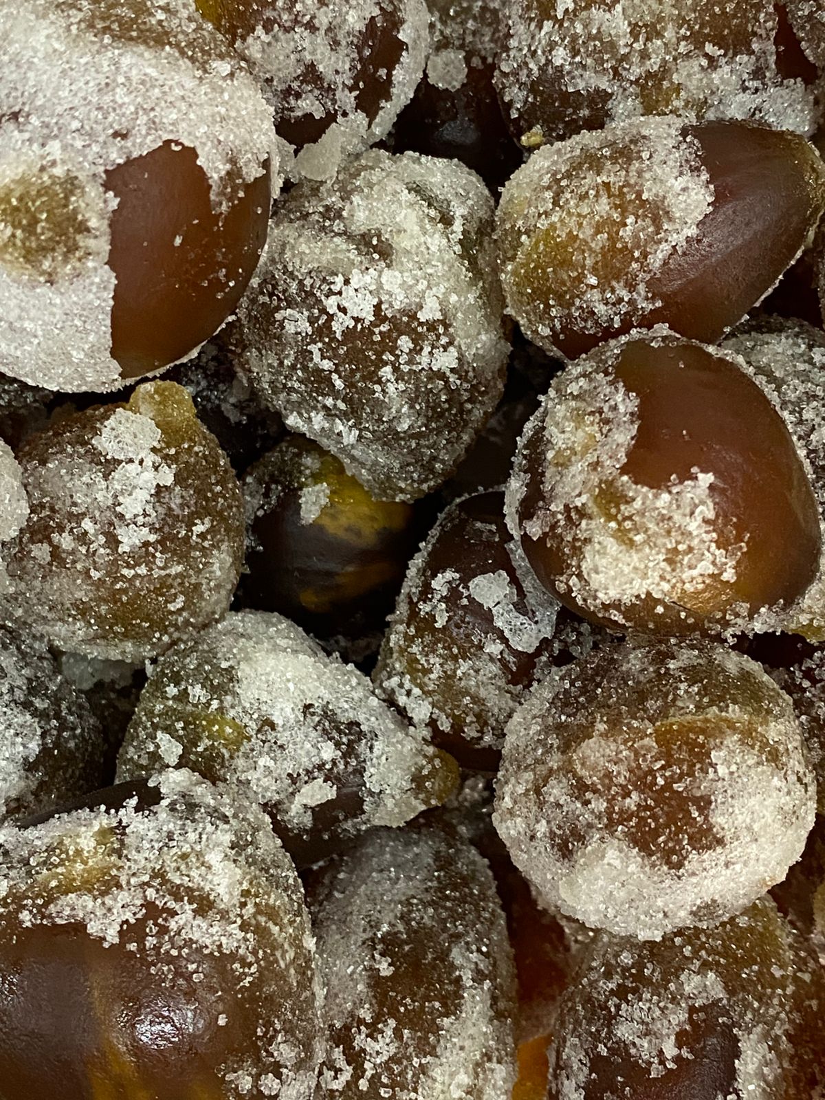 O figo cristalizado é obtido a partir do figo submetido a um processo de conservação com açúcar, preservando sabor e textura característicos.