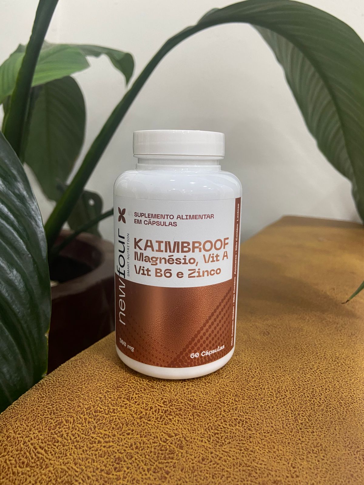 O Kaimbroof da New Four é um suplemento alimentar em cápsulas que combina magnésio (geralmente na forma bisglicinato ou quelada), vitamina A (retinol ou betacaroteno), vitamina B6 (piridoxina) e zinco (bisglicinato ou quelado), formulado para suporte à saúde hormonal masculina, testosterona natural, imunidade, energia e bem-estar geral (500mg por cápsula, 60 cápsulas por frasco).