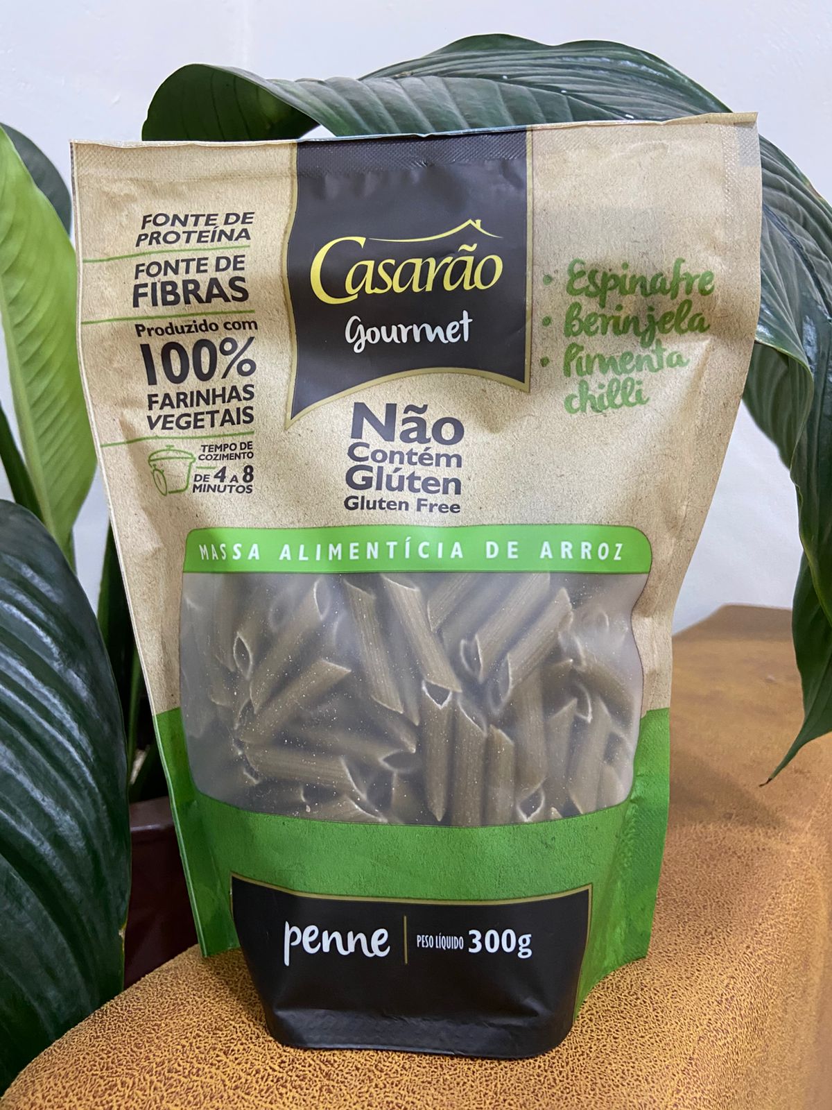 Descrição: O Penne Casarão nesta versão combina ingredientes de alta densidade nutritiva com um perfil de sabor marcante. O Espinafre fornece ferro e vitaminas essenciais, a Berinjela contribui com fibras e minerais que auxiliam no controle do colesterol, e a Pimenta Chilli adiciona um toque termogénico, estimulando o metabolismo. É uma massa 100% natural, sem glúten e vegana, ideal para quem procura uma refeição funcional com um toque picante e nutritivo.