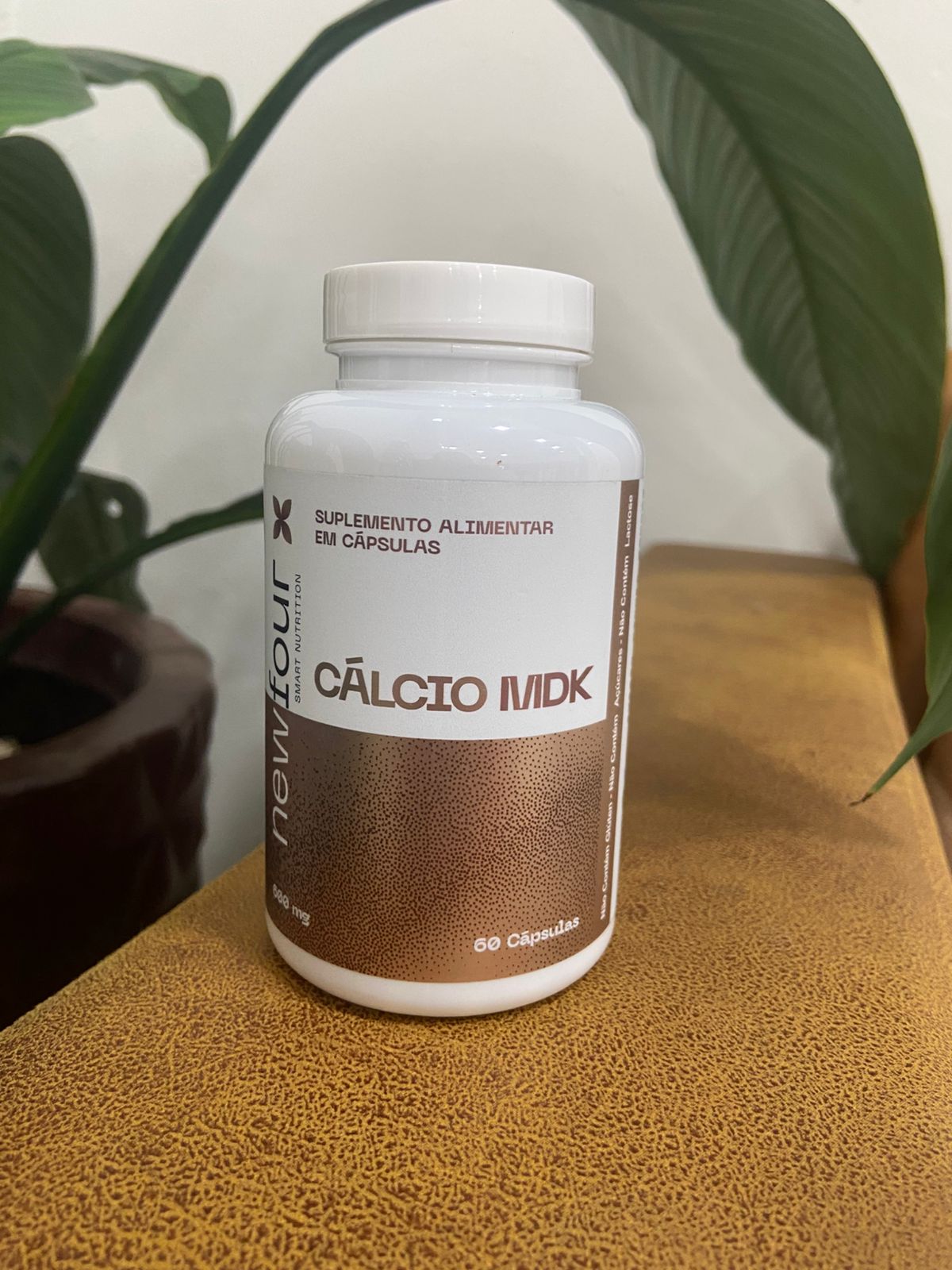 O Cálcio MDK da New Four é um suplemento alimentar em cápsulas que combina cálcio (geralmente de fonte natural ou carbonato), magnésio (bisglicinato ou malato para alta absorção), vitamina D3 (colecalciferol) e vitamina K2 (menaquinona-7), formulado para suporte sinérgico à saúde óssea, muscular e cardiovascular (600mg por cápsula ou porção aproximada, 60 cápsulas por frasco).
