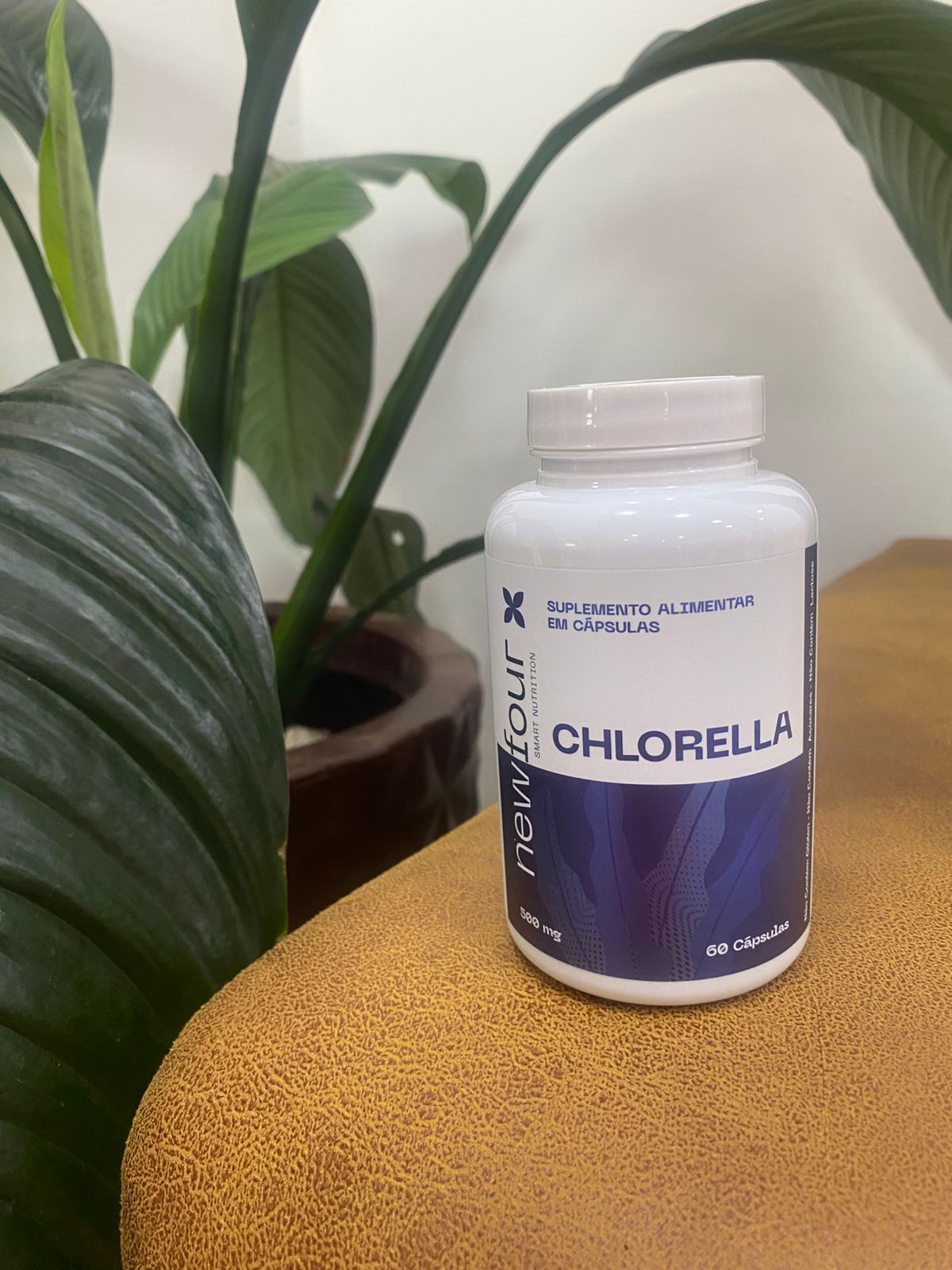 A Chlorella da New Four é um suplemento alimentar em cápsulas à base de alga verde unicelular Chlorella (Chlorella vulgaris ou pyrenoidosa), um superalimento natural rico em clorofila, proteínas completas, vitaminas, minerais e antioxidantes, formulado para suporte detox, imunidade e nutrição geral (500mg por cápsula, 60 cápsulas por frasco).