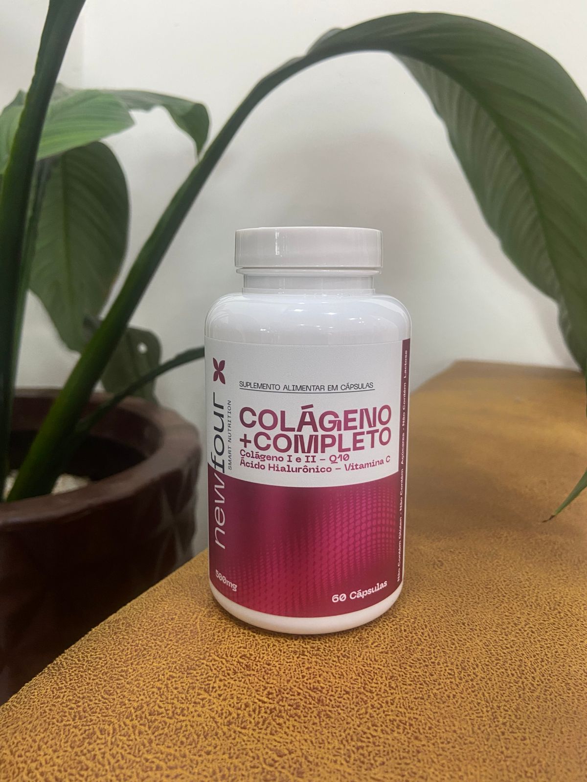 O Colágeno + Completo da New Four é um suplemento alimentar avançado em cápsulas que combina colágeno hidrolisado (tipo I), colágeno tipo II, coenzima Q10, ácido hialurônico e vitamina C, formulado para suporte completo à pele, articulações, cabelos, unhas e energia celular (500mg por cápsula, 60 cápsulas por frasco).