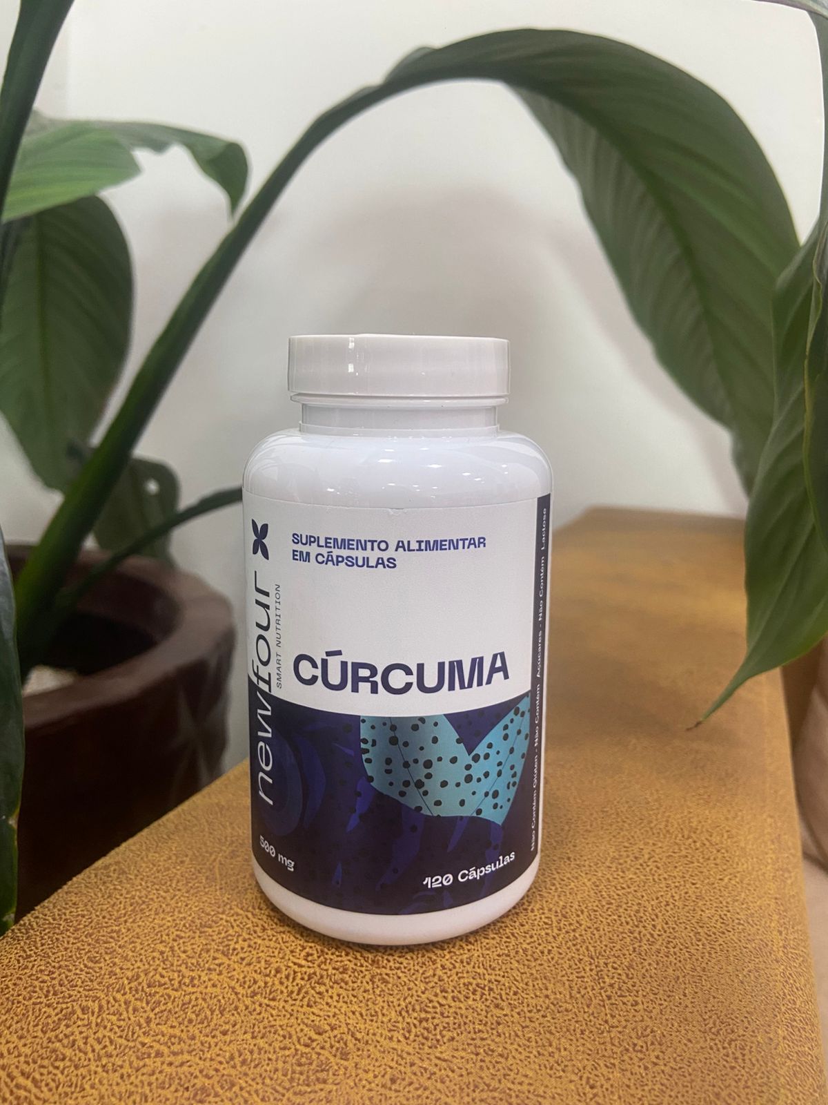 A Cúrcuma + Pimenta Preta da New Four é um suplemento alimentar em cápsulas que combina extrato de cúrcuma longa (fonte de curcumina) com pimenta preta (piperina), formulado para potencializar a absorção e maximizar os benefícios anti-inflamatórios e antioxidantes (500mg por cápsula, 120 cápsulas por frasco).