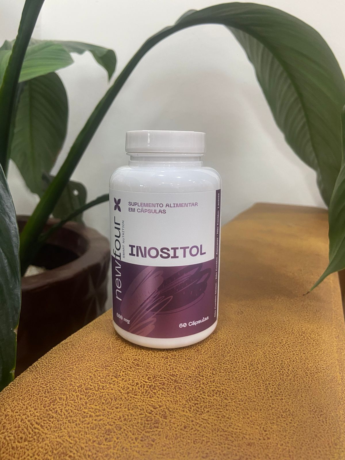 O Inositol New Four é um suplemento alimentar em cápsulas com inositol (principalmente mio-inositol), um composto natural semelhante a uma vitamina do complexo B, formulado para suporte ao equilíbrio hormonal, bem-estar mental e funções celulares (600mg por cápsula, 60 cápsulas por frasco).