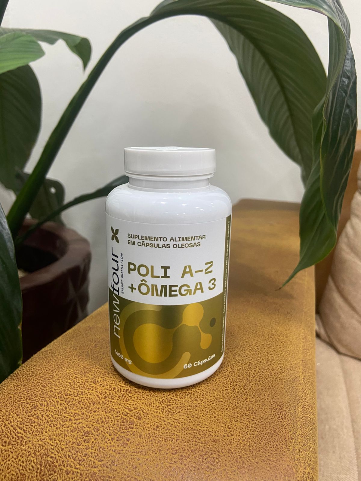 O Poli A-Z + Ômega 3 da New Four é um suplemento alimentar avançado em cápsulas que combina um polivitamínico completo (de A a Z) com óleo de peixe concentrado rico em Ômega 3 (EPA + DHA), formulado para suporte nutricional total, energia sustentada, saúde cardiovascular, cerebral e imunológica (1400mg por cápsula ou porção aproximada, 60 cápsulas por frasco – embalagem econômica para uso diário).