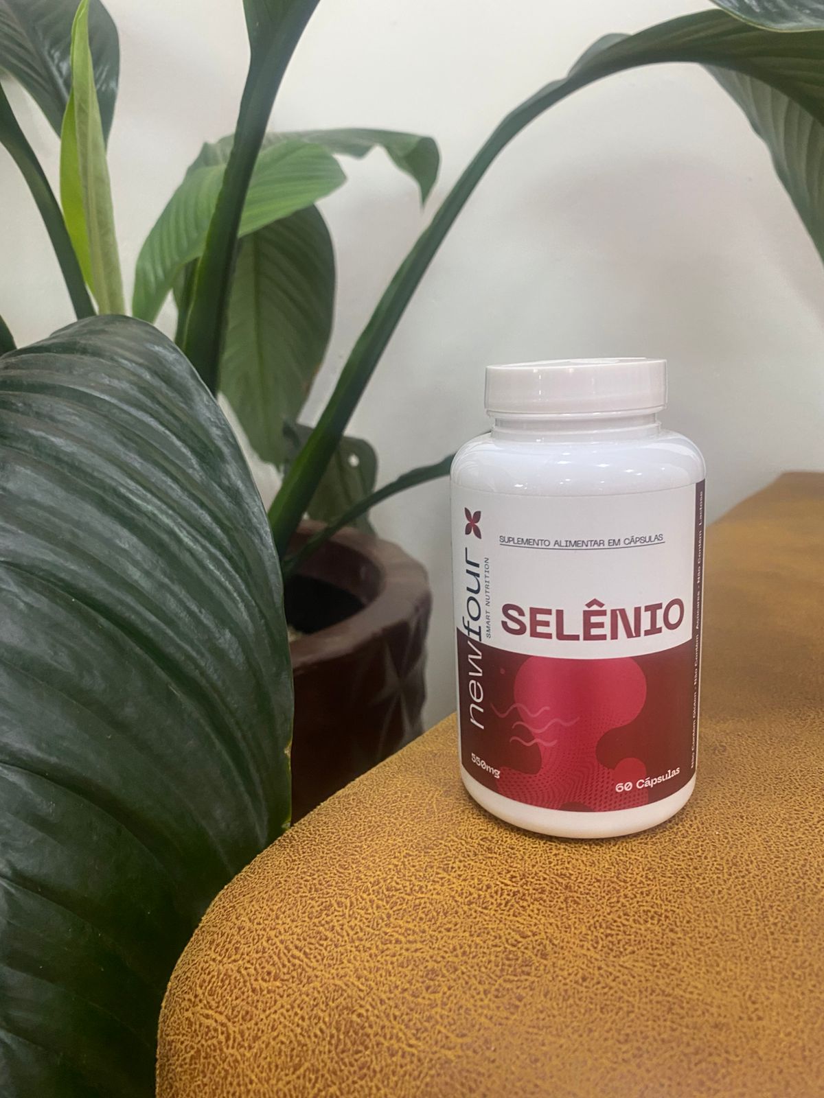 O Selênio da New Four é um suplemento alimentar em cápsulas com selênio (geralmente na forma de selenito de sódio), mineral essencial traço, formulado para suporte à função tireoidiana, defesa antioxidante e imunidade (550mg por cápsula, 60 cápsulas por frasco – nota: o teor refere-se ao peso da cápsula, com selênio elementar em dose típica de suplementos ~50-200mcg).