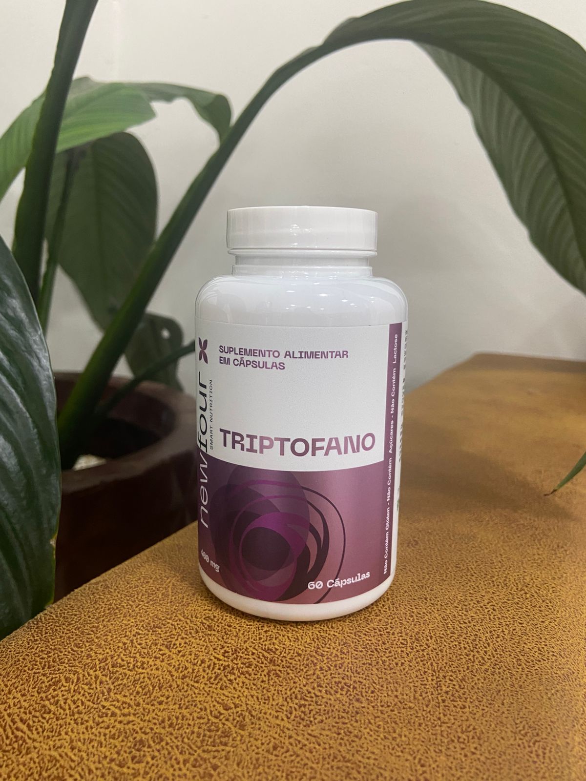 O Triptofano da New Four é um suplemento alimentar em cápsulas com L-triptofano puro (aminoácido essencial precursor da serotonina e melatonina), formulado para suporte ao equilíbrio emocional, qualidade do sono e redução de estresse (400mg por cápsula, 60 cápsulas por frasco).