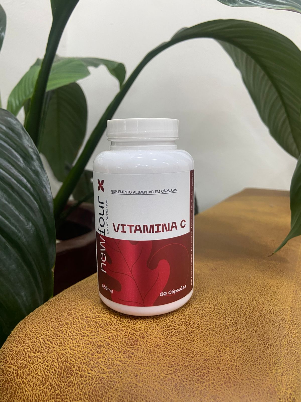 A Vitamina C da New Four é um suplemento alimentar em cápsulas com vitamina C pura (ácido ascórbico), um antioxidante essencial hidrossolúvel, formulado para suporte imunológico, proteção celular e bem-estar geral (650mg por cápsula, 60 cápsulas por frasco).