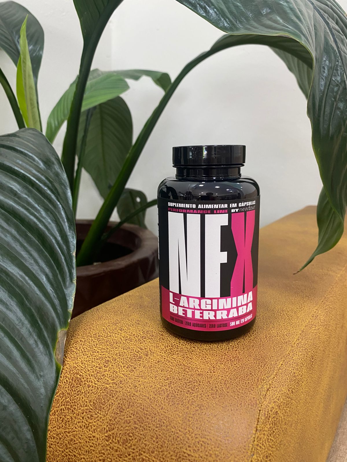O NFX L-Arginina + Beterraba é um suplemento em cápsulas da linha NFX (New Four), combinando L-arginina (aminoácido) com extrato/fibra de beterraba, formulado para suporte à performance física, circulação e energia.