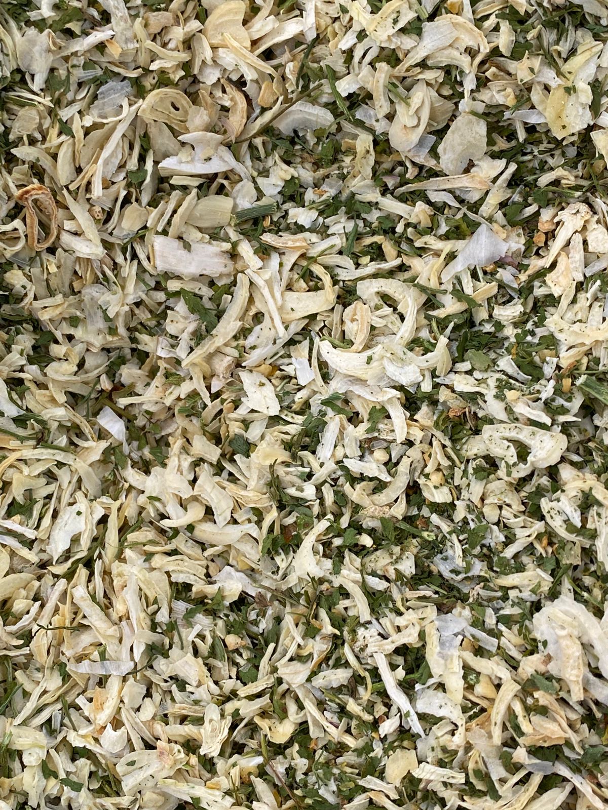 Descrição Técnica: Mistura equilibrada de três dos condimentos mais fundamentais da culinária, apresentados na forma desidratada e granulada. Este blend combina a pungência do alho, a doçura característica da cebola e a frescura herbácea da salsa. É uma solução versátil para a base de qualquer refogado ou para a finalização de pratos, garantindo sabor e aroma constantes.