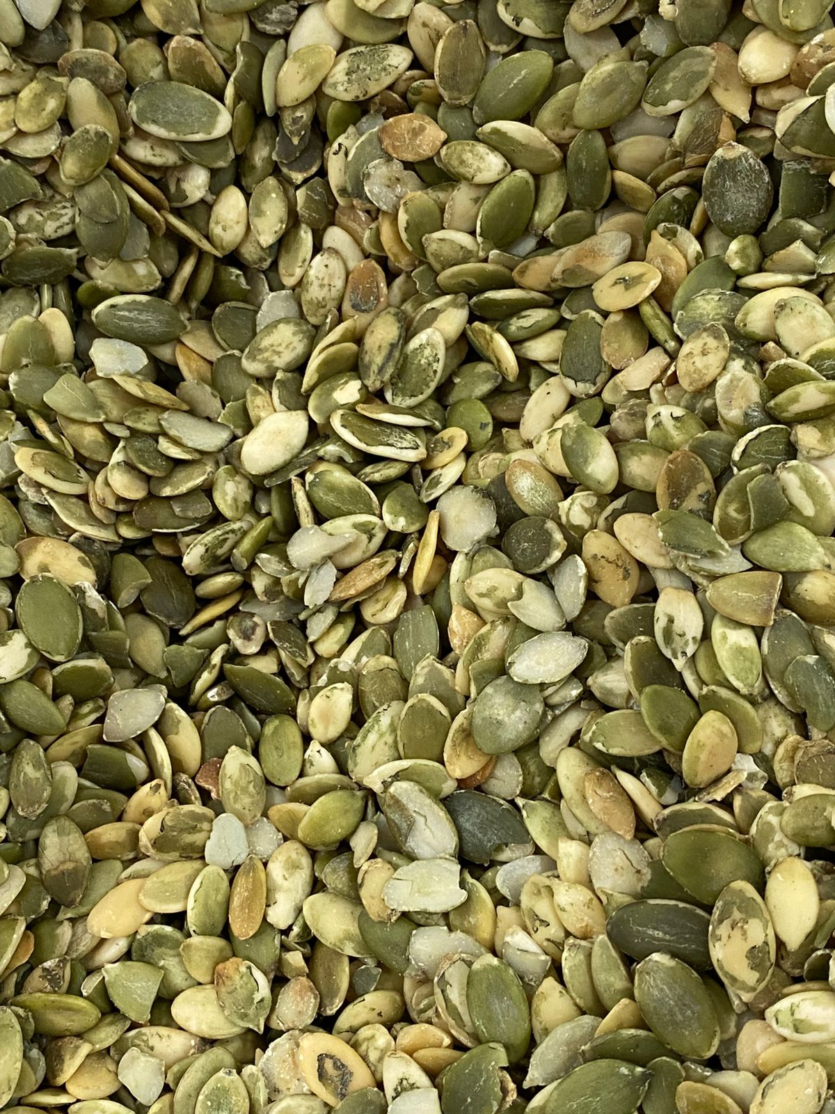 Características: Sementes de formato oval e achatado, com uma coloração verde escura característica. Possuem textura macia mas firme e um sabor suave e amanteigado. São uma das melhores fontes vegetais de Zinco, Magnésio, Ferro e Fósforo, além de conterem proteínas de alta qualidade e gorduras saudáveis (Ómega-6 e 9).