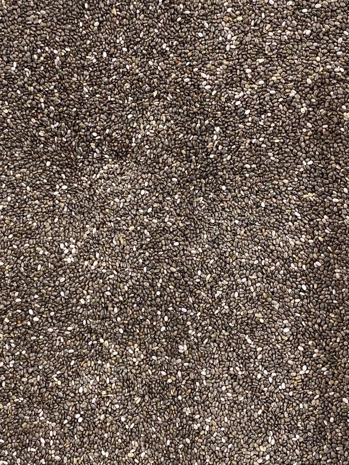 Características: Sementes ovais e pequenas, com uma mistura de cores entre o preto, cinzento e branco. Possui um sabor neutro, o que a torna extremamente versátil. É uma das maiores fontes vegetais de Ómega-3, além de ser rica em fibras solúveis, proteínas de alto valor biológico, cálcio, magnésio e fósforo.